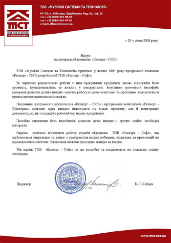 Компания «Эксперт-Софт» получила ОТЗЫВ на программный комплекс «Эксперт-СКС» от ЧП Григорий Васильевич Череда.